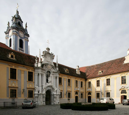 Dem Propst standen während der Umgestaltung der Klosteranlage zwei Personen zur Seite: der Baumeister, der regelmäßig auf die Baustelle kam (in den ersten Jahren des Umbaus war das Jakob Prandtauer, später dann Joseph Munggenast), und der Polier, der im Unterschied zum Baumeister permanent vor Ort war. Er hatte leitete und überwachte den Baubetrieb – wie man sieht, nicht immer mit Erfolg. :)